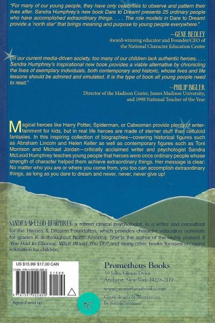 Magical heroes like Harry Potter, Spiderman, or Catwoman provide plenty of entertainment for kids, but in real life heroes are made of sterner stuff than celluloid fantasies. In this inspiring collection of biographies—covering historical figures such as Abraham Lincoln and Helen Keller as well as contemporary figures such as Toni Morrison and Michael Jordan—critically acclaimed writer and psychologist Sandra McLeod Humphrey teaches young people that heroes were once ordinary people whose strength of character helped them to achieve extraordinary things. Starting with only their dreams, they worked hard and overcame obstacles to make their dreams come true. Some overcame physical handicaps, others psychological barriers like extreme shyness or feelings of inferiority; some faced racial discrimination or educational disadvantage, others financial burdens. In spite of these frustrations and discouragements, all of these people discovered in themselves the patience, perseverance, and determination to pursue their dreams beyond every obstacle.The message is clear: No matter who you are or where you come from, you too can accomplish extraordinary things, as long as you dare to dream and never, never, never give up!