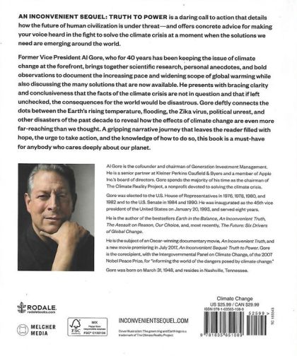 A New York Times bestseller!The follow up to the #1 New York Times bestselling An Inconvenient Truth and companion to Vice President Al Gore’s new documentary, An Inconvenient Sequel: Truth to Power, this new book is a daring call to action. It exposes the reality of how humankind has aided in the destruction of our planet and delivers hope through groundbreaking information on what you can do now.Vice President Gore, one of our environmental heroes and a leading expert in climate change, brings together cutting-edge research from top scientists around the world; approximately 200 photographs and illustrations to visually articulate the subject matter; and personal anecdotes and observations to document the fast pace and wide scope of global warming. He presents, with alarming clarity and conclusiveness (and with humor, too) that the fact of global climate change is not in question and that its consequences for the world we live in will be assuredly disastrous if left unchecked.Follow Vice President Gore around the globe as he tells a story of change in the making. He connects the dots of Zika, flooding, and other natural disasters we've lived through in the last 10+ years—and much more.The book also offers a comprehensive how-to guide on exactly how we can change the course of fate. With concrete, actionable advice on topics ranging from how to run for office to how to talk to your children about climate change, An Inconvenient Sequel will empower you to make a difference—and lets you know how exactly to do it.Where Gore’s first documentary and book took us through the technical aspects of climate change, the second documentary is a gripping, narrative journey that leaves you filled with hope and the urge to take action immediately. This book captures that same essence and is a must-have for everyone who cares deeply about our planet.