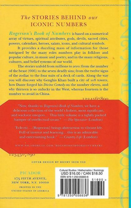 THE STORIES BEHIND OUR ICONIC NUMBERSRogerson's Book of Numbers is based on a numerical array of virtues, spiritual attributes, gods, devils, sacred cities, powers, calendars, heroes, saints, icons, and cultural symbols.It provides a dazzling mass of information for those intrigued by the many roles numbers play in folklore and popular culture, in music and poetry, and in the many religions, cultures, and belief systems of our world.The stories unfold from millions to zero: from the number of the beast (666) to the seven deadly sins; from the twelve signs of the zodiac to the four suits of a deck of cards. Along the way, author Barnaby Rogerson will show you why Genghis Khan built a city of 108 towers, how Dante forged his Divine Comedy on the number eleven, and why thirteen is so unlucky in the West whereas fourteen is the number to avoid in China.