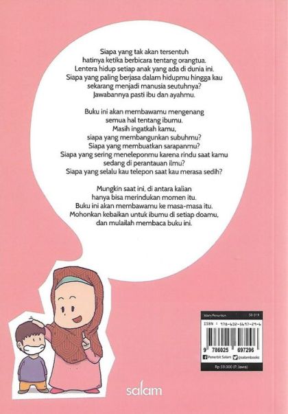 Siapa yang tak akan tersentuh hatinya ketika berbicara tentang orangtua. Lentera hidup setiap anak yang ada di dunia ini. Siapa yang paling berjasa dalam hidupmu hingga kau sekarang menjadi manusia seutuhnya? Jawabannya pasti ibu dan ayahmu. Buku ini akan membawamu mengenang semua hal tentang ibumu. Masih ingatkah kamu, siapa yang membangunkan subuhmu? Siapa yang membuatkan sarapanmu? Siapa yang sering menelponmu karena rindu saat kamu sedang di perantauan ilmu? Siapa yang selalu kau telepon saat kau merasa sedih? Mungkin saat ini, di antara kalian hanya bisa merindukan momen itu. Buku ini akan membawamu ke masa-masa itu. Mohonkan kebaikan untuk ibumu di setiap doamu, dan mulailah membaca buku ini.