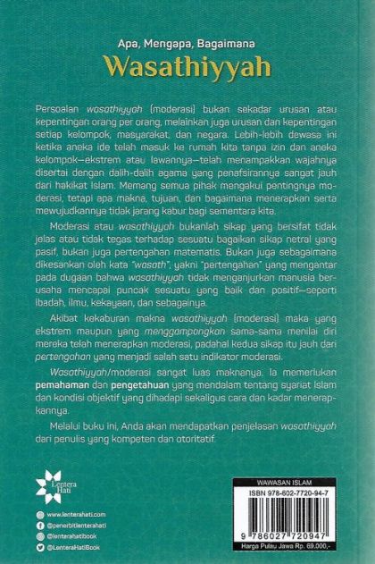 Persoalan wasathiyyah (moderasi) bukan sekadar urusan atau kepentingan orang per orang, melainkan juga urusan dan kepentingan setiap kelompok, masyarakat, dan negara. Lebih-lebih dewasa ini ketika aneka ide telah masuk ke rumah kita tanpa izin dan aneka kelompok--ekstrem atau lawannya--telah menampakkan wajahnya disertai dengan dalih-dalih agama yang penafsirannya sangat jauh dari hakikat Islam. Memang semua pihak mengakui pentingnya moderasi, tetapi apa makna, tujuan, dan bagaimana menerapkan serta mewujudkannya tidak jarang kabur bagi sementara kita.