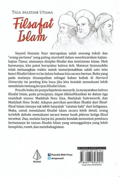 Seyyed Hossein Nasr merupakan salah seorang tokoh dan “orang pertama” yang paling otoritatif dalam membicarakan kajian-kajian Timur, utamanya disiplin filsafat dan mistisisme Islam. Oleh karenanya, kita patut bersyukur bahwa Ach. Maimun Syamsuddin telah meluangkan waktu untuk menerjemahkan salah satu teks kunci filsafat Islam ini ke dalam bahasa kita secara bernas. Buku yang pada mulanya disampaikan sebagai bahan kuliah di Harvard University ini penting kita baca jika kita hendak memahami lebih mendalam tentang korpus filsafat Islam.Penulis buku ini punya hipotesis menarik. Ia menyatakan bahwa filsafat Islam, pada prinsipnya, dapat diklasifikasikan ke dalam tiga madzhab utama: Madzhab Ibnu Sina, Madzhab Suhrawardi, dan Madzhab Ibnu ‘Arabi. Adapun percikan-percikan filsafat dari filsuf-filsuf Islam lainnya tak lebih hanyalah “catatan kaki” dari ketiganya. Maka, untuk mendalami filsafat Islam secara lebih detail, orang terlebih dahulu memahami secara benar buah pikiran ketiga filsuf tersebut. Dan, melalui karya ini, penulis hendak menuntun pembaca bertamasya ke taman filsafat Islam yang sesungguhnya yang lebih kompleks, rumit, dan membahagiakan.