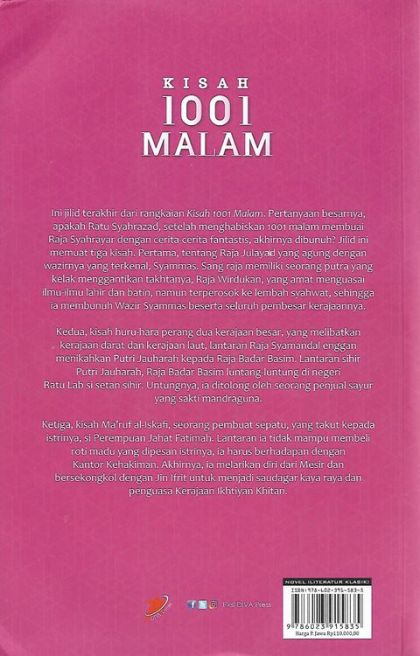 Pada zaman Khalifah Harun ar-Rasyid, seluruh jin di dunia ini tunduk kepada seekor Raja Diraja Jin yang berkuasa di kepulauan Waq Waq. Ia punya anak cantik bernama Putri Manar Sana. Nah, putri ini dinikahi oleh seorang manusia pengrajin emas, Hasan ash-Sha’igh al-Bashri. Petualangan lelaki asal Basrah itu dalam menjerat hati sang pujaannya, badai yang menerpa biduk rumah tangganya, serta penaklukannya terhadap Kerajaan Waq Waq yang fantastis, mengawali Kisah 1001 Malam Jilid 7 (dari malam 738 sampai 879) ini.Selanjutnya, disajikan hikayat yang membangkitkan renungan-renungan sufistik tentang sepasang sahabat, yang satu jahat seumur hidup (Abu Qair), satunya lagi baik seumur hidup (Abu Shair). Hikayat ini mendedahkan bahwa rupanya kebaikan yang tak terbatas mampu “membunuh” kejahatan yang tak terbatas. Diangkat pula hikayat perselingkuhan seorang istri Yahudi—suaminya juga Yahudi—dengan lelaki Nasrani. Hikayat ini membuka kedok tabiat buruk bangsa Yahudi yang terkenal dalam al-Qur’an, yakni demi keselamatan, kesenangan, dan keuntungan dirinya, mereka mampu melakukan apa saja, termasuk sesuatu yang bertentangan dengan hati nuraninya sendiri.Terakhir, dibentangkan kisah tentang saudagar bersahaja asal Mesir, Tajuddin, yang putranya, Nuruddin, terperosok dalam gemerlap kehidupan kawula muda yang melanggar batas-batas agama dan tradisi. Padahal, mulanya ia seorang pemuda yang tak akan melakukan apa pun tanpa diperintahkan oleh Allah Swt. dan tanpa izin dari orang tuanya. Ia lantas dihukum oleh Tuhan dengan “dibuang” ke kota jauh Iskandariah. Tetapi, ini bukan akhir hidupnya, justru permulaan dari petualangannya. Hal-hal fantastis apakah yang akan ia hadapi? Jilid ini akan menjawabnya.