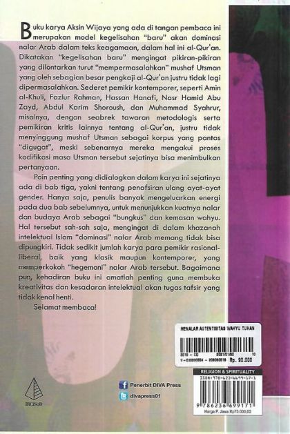 Buku karya Aksin Wijaya yang ada di tangan pembaca ini merupakan model kegelisahan “baru” akan dominasi nalar Arab dalam teks keagamaan, dalam hal ini al-Qur’an. Dikatakan “kegelisahan baru” mengingat pikiran-pikiran yang dilontarkan turut “mempermasalahkan” mushaf Utsman yang oleh sebagian besar pengkaji al-Qur’an justru tidak lagi dipermasalahkan. Sederet pemikir kontemporer, seperti Amin al-Khuli, Fazlur Rahman, Hassan Hanafi, Nasr Hamid Abu Zayd, Abdul Karim Shoroush, dan Muhammad Syahrur, misalnya, dengan seabrek tawaran metodologis serta pemikiran kritis lainnya tentang al-Qur’an, justru tidak menyinggung mushaf Utsman sebagai korpus yang pantas “digugat”, meski sebenarnya mereka mengakui proses kodifikasi masa Utsman tersebut sejatinya bisa menimbulkan pertanyaan.Poin penting yang didialogkan dalam karya ini sejatinya ada di bab tiga, yakni tentang penafsiran ulang ayat-ayat gender. Hanya saja, penulis banyak mengeluarkan energi pada dua bab sebelumnya, untuk menunjukkan kuatnya nalar dan budaya Arab sebagai “bungkus” dan kemasan wahyu. Hal tersebut sah-sah saja, mengingat di dalam khazanah intelektual Islam “dominasi” nalar Arab memang tidak bisa dipungkiri. Tidak sedikit jumlah karya para pemikir rasional-liberal, baik yang klasik maupun kontemporer, yang memperkokoh “hegemoni” nalar Arab tersebut. Bagaimana pun, kehadiran buku ini amatlah penting guna membuka kreativitas dan kesadaran intelektual akan tugas tafsir yang tidak kenal henti.