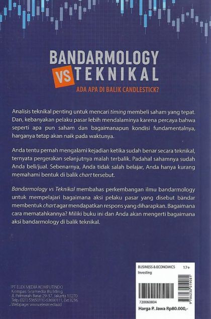 Analisis Teknikal Penting Untuk Mencari Timing Membeli Saham Yang Tepat. Dan, Kebanyakan Pelaku Pasar Lebih Mendalaminya Karena Percaya Bahwa Seperti Apa Pun Saham Dan Bagaimanapun Kondisi Fundamentalnya, Harganya Tetap Akan Naik Pada Waktunya. Anda Tentu Pernah Mengalami Kejadian Ketika Sudah Benar Secara Teknikal, Ternyata Pergerakan Selanjutnya Malah Terbalik. Padahal Sahamnya Sudah Anda Beli/jual. Sebenarnya, Anda Tidak Salah Belajar, Anda Hanya Kurang Memahami Bentuk Di Balik Chart Tersebut. Bandarmology Vs Teknikal Membahas Perkembangan Ilmu Bandarmology Untuk Mempelajari Bagaimana Aksi Pelaku Pasar Yang Disebut Bandar Membentuk Chart Agar Mendapatkan Respons Yang Diharapkan. Bagaimana Cara Mematahkannya? Miliki Buku Ini Dan Anda Akan Mengerti Bagaimana Aksi Bandarmology Di Balik Teknikal.