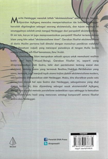 Martin Heidegger menolak istilah “eksistensialisme” untuk dirinya. Namun, Alparslan Açikgenç mencoba mempertahankan ide bahwa Heidegger haruslah digolongkan sebagai seorang eksistensialis, dan tujuan studinya ini sesungguhnya adalah untuk menguji Heidegger dari perspektif eksistensialisme. Di sisi lain, karya ini juga mempresentasikan perspektif filsafat tertentu dalam Islam yang kita sebut “eksistensialisme Islam”. Gerakan filsafat eksistensialisme di dunia Muslim pertama kali dimulai dengan munculnya pemikiran wahdatul wujud (kesatuan wujud) yang mencapai puncaknya di tangan Mulla Sadra melalui seorang sufi-filsuf kenamaan, Ibnu ‘Arabi.