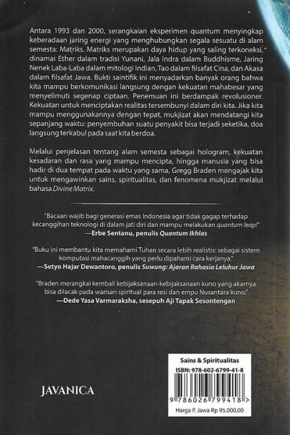 Melalui penjelasan tentang alam semesta sebagai hologram, kekuatan kesadaran dan rasa yang mampu mencipta, hingga manusia yang bisa hadir di dua tempat pada waktu yang sama, Gregg Braden mengajak kita untuk mengawinkan sains, spiritualitas, dan fenomena mukjizat melalui bahasa Divine Matrix.