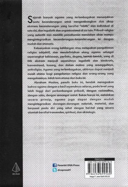 Abraham Maslow, penulis buku ini, hendak menegaskan bahwa agama dengan a kecil sepenuhnya selaras, pada level yang lebih tinggi dari perkembangan pribadi, dengan rasionalitas, dengan sains, dengan semangat sosial. Bukan hanya ini, melainkan secara prinsip, agama juga dapat dengan mudah mengintegrasikan dorongan-dorongan naluriah, material, dan berpusat pada diri yang sehat dengan hal-hal yang secara alamiah bersifat transenden, spiritual, dan aksiologis.