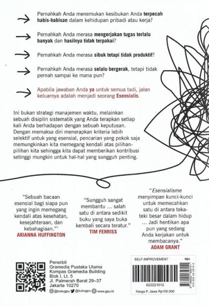 Sehingga kita bisa simpulkan, kunci kegagalan adalah berusaha meraih banyak hal. Berusaha mencapai dan mengerjakan banyak hal. Karena sebagian besar hal yang datang kepada kita bukanlah hal-hal yang penting. Jika kita ingin memiliki keberhasilan yang berkesinambungan, kita perlu mengabaikan sebagian besar hal yang datang kepada kita dan fokus pada satu hal terpenting yang sudah kita pilih. Inilah jalan seorang esensialis. Jalan yang berbeda dengan para non esensialis.