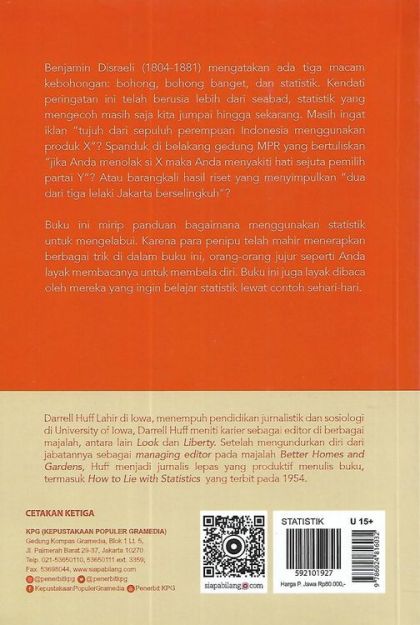 Buku Berbohong Dengan Statistik karya Darrell Huff akan menjadi panduan cara menggunakan statistik untuk berbohong. Para penipu telah mahir menerapkan berbagai trik di dalam buku ini, orang-orang jujur seperti Anda layak membacanya untuk membela diri. Buku ini juga layak dibaca oleh mereka yang ingin belajar statistik berdasarkan contoh kegiatan sehari-hari. Buku ini merupakan terjemahan dari judul aslinya yaitu How to Lie With Statistics yang terbit pertama kali tahun 1954. Terdapat contoh-contoh yang sebagian besar berasal dari berbagai surat kabar atau majalah terbitan tahun 1954 hingga 1973. Walaupun data di dalam buku ini telah kadaluwarsa, tetapi makna yang terkandung masih relate dengan pembahasannya. Oleh karena itu, buku Berbohong Dengan Statistik masih termasuk ke dalam buku klasik dan sudah dipuji oleh banyak ahli statistik.