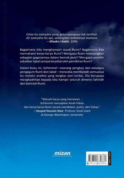 Dalam buku ini, Schimmel -- seorang pengkaji dan sekaligus pengagum Rumi dan Iqbal -- mencoba membedah semuanya itu melalui analisis yang tangkas dan cerdas. Dia berupaya menghadirkan kepada kita hampir seluruh dimensi lahiriah dan batiniah Rumi.