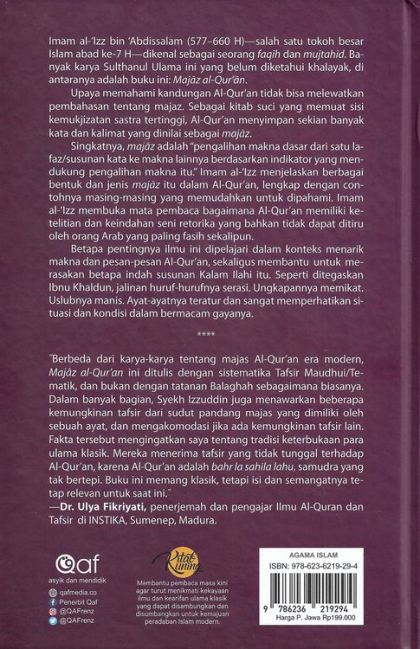 Imam al-‘Izz bin ‘Abdissalam (577–660 H)—salah satu tokoh besar Islam abad ke-7 H—dikenal sebagai seorang faqīh dan mujtahid. Banyak karya Sulthanul Ulama ini yang belum diketahui khalayak, di antaranya adalah buku ini: Majāz al-Qur’ān.