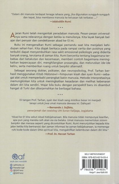 Sebagai seorang dokter, psikiater, dan neuropsikolog, Prof. Tarhan berhasil menggunakan Kitab Matsnawi—himpunan kisah dan syair Rumi—sebagai alat untuk memperbaiki perangkat batin manusia. Metode interpretasinya memungkinkan kita untuk meningkatkan kesadaran dan melihat kebenaran dalam diri kita sendiri. Wajar bila buku dengan perspektif baru ini disambut hangat di Turki dan diterjemahkan ke berbagai bahasa.