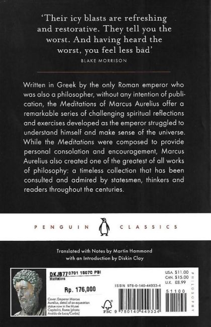 A clear and eloquent leading translation of the Roman emperor’s reflections of human life and death, timeless Stoic philosophy that inspires countless others including The Daily Stoic author Ryan Holiday to use philosophy as a tool for self-improvement and resilience to live a better lifeWritten in Greek by an intellectual Roman emperor without any intention of publication, the Meditations of Marcus Aurelius offer a wide range of fascinating spiritual reflections and exercises developed as the leader struggled to understand himself and make sense of the universe. Spanning from doubt and despair to conviction and exaltation, they cover such diverse topics as the question of virtue, human rationality, the nature of the gods and the values of leadership. But while the Meditations were composed to provide personal consolation, in developing his beliefs Marcus also created one of the greatest of all works of philosophy: a series of wise and practical aphorisms that have been consulted and admired by statesmen, thinkers and ordinary readers for almost two thousand years.To provide a full understanding of Aurelius's seminal work, this edition includes explanatory notes, a general index, an index of quotations, an index of names, and an introduction by Diskin Clay putting the work in its biographical, historical, and literary context, a chronology of Marcus Aurelius's life and career.For more than seventy years, Penguin has been the leading publisher of classic literature in the English-speaking world. With more than 1,700 titles, Penguin Classics represents a global bookshelf of the best works throughout history and across genres and disciplines. Readers trust the series to provide authoritative texts enhanced by introductions and notes by distinguished scholars and contemporary authors, as well as up-to-date translations by award-winning translators.