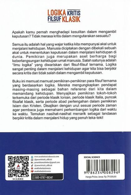 Seperti dalam buku ini yang memuat pemikiran-pemikiran para filsuf ternama yang berdasarkan logika. Mereka mengungkapkan pendapat masing-masing sebagai bahan referensi dari kita dalam memandang kehidupan. Menyajikan pemikiran tokoh-tokoh terkemuka dari periode klasik Ionian, periode klasik Italia, puncak filsafat klasik, serta periode abad pertengahan dalam pemikiran Islam dan Kristen. Disajikan dengan urut sesuai periode zaman agar pembaca juga memahami perkembangan logika dari waktu ke waktu. Temukan nasihat-nasihat menarik sebagai landasan berpikir kritis dalam menjalani hidup yang penuh teka-teki!
