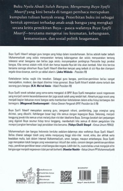 Buku Nyala Abadi Suluh Bangsa, Mengenang Buya Syafii Maarif yang kini berada di tangan pembaca merupakan kumpulan tulisan banyak orang. Penerbitan buku ini sebagai bentuk apresiasi terhadap anak-anak bangsa yang mengkaji secara kritis pemikiran Buya-pasca-wafatnya Buya Syafii Maarif-terutama mengenai isu keumatan, kebangsaan, kemanusiaan, dan sosial politik keagamaan.