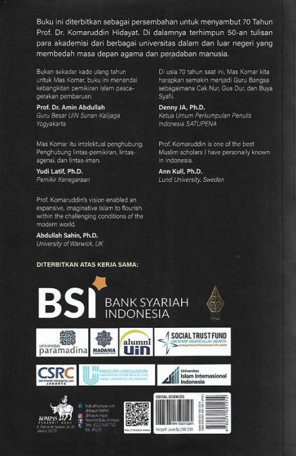 Dari segi jumlah pemeluknya, umat Islam senantiasa bertambah dari tahun ke tahun dan sekarang mendekati 1,8 miliar. Namun, perkembangan kuantitas ini tidak diiringi dengan perkembangan kualitas, terutama dari aspek sains, teknologi, dan ekonomi. Ketika sains dan teknologi semakin agresif dan ekstensif menawarkan jasanya untuk menyelesaikan berbagai problem yang dihadapi manusia, lalu apakah yang paling distingtif yang diperankan oleh agama? Pertanyaan inilah yang menjadi fokus utama dalam buku ini. Pada bab akhir buku ini saya mengundang beberapa teman intelektual untuk menyumbangkan pemikirannya dengan sudut pandang yang berbeda-beda mengenai topik yang sama, yaitu bagaimana posisi agama ketika mesti bertemu dan berdialog dengan peradaban lokal dan global yang berkembang sangat dinamis dalam sebuah dunia yang saling terkoneksi secara intens.