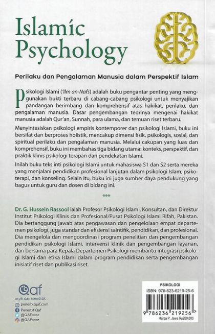 Menyintesiskan psikologi empiris kontemporer dan psikologi Islami, buku ini bersifat dan berproses holistik, mencakup dimensi fisik, psikologis, sosial, dan spiritual perilaku dan pengalaman manusia. Melalui cakupan yang luas dan komprehensif, buku ini membahas tiga bidang utama: konteks, perspektif, dan praktik klinis psikologi terapan dari pendekatan Islami.