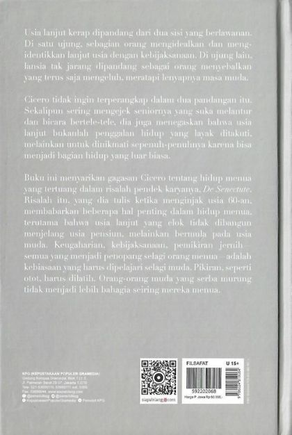 Disajikan di sini dalam terjemahan baru yang hidup dengan pengantar baru yang informatif dan bahasa Latin asli di halaman depan. Buku ini secara langsung membahas ketakutan terbesar menjadi tua dan secara persuasif berpendapat mengapa kekhawatiran ini sangat dibesar-besarkan--atau sama sekali keliru.
