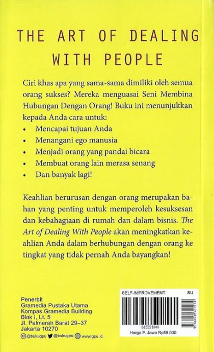 The Art Of Dealing With People adalah sebuah buku rujukan yang lengkap bagi mereka yang ingin mengembangkan keterampilan orang. Melalui buku ini Les Giblin membagikan metode teruji untuk bergaul dengan orang-orang. Buku ini membagikan ilmu berurusan dengan orang-orang sedemikian rupa sehingga ego kita dan ego mereka tetap utuh.
