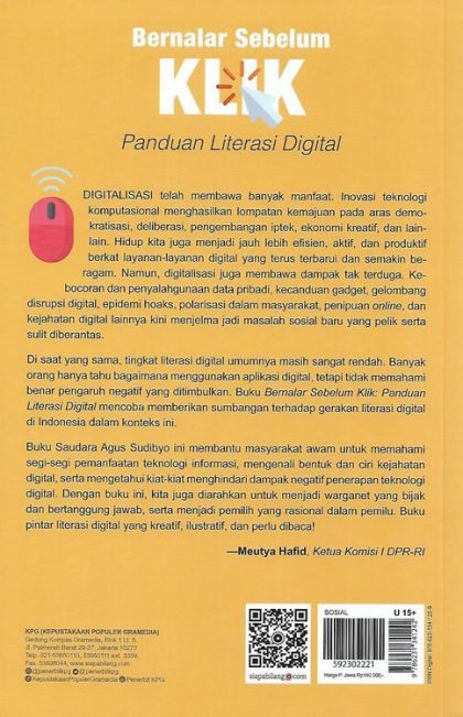 Buku Bernalar Sebelum Klik: Panduan Literasi Digital mencoba memberikan sumbangan terhadap gerakan literasi digital di Indonesia dalam konteks ini. Buku Saudara Agus Sudibyo ini membantu masyarakat awam untuk memahami segi-segi pemanfaatan teknologi informasi, mengenali bentuk dan ciri kejahatan digital, serta mengetahui kiat-kiat menghindari dampak negatif penerapan teknologi digital.