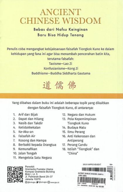 Penulis coba mengangkat kebijaksanaan falsafah Tiongkok Kuno ke dalam kehidupan yang fana ini agar bisa menambah pencerahan batin kita, terutama falsafah: