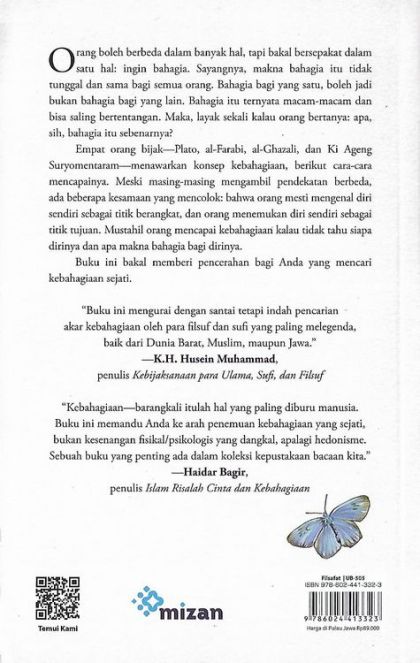 “Buku ini mengurai dengan santai tetapi indah pencarian akar kebahagiaan oleh para filsuf dan sufi yang paling melegenda baik dari Dunia Barat, Muslim, maupun Jawa.”