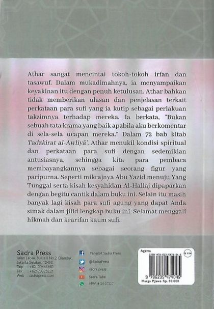 Athar sangat mencintai tokoh-tokoh irfan dan tasawuf. Dalam mukadimahnya, ia menyampaikan keyakinan itu dengan penuh ketulusan. Athar bahkan tidak memberikan ulasan dan penjelasan terkait perkataan para sufi yang ia kutip sebagai perlakuan takzimnya terhadap mereka. Ia berkata, "Bukan sebuah tata krama yang baik apabila aku berkomentar di sela-sela ucapan mereka". Dalam 72 bab kitab Tadzkirat al-Awliyā', Athar menukil kondisi spiritual dan perkataan para sufi dengan sedemikian antusiasnya, sehingga kita para pembaca membayangkannya sebagai seorang figur yang paripurna. Seperti mikrajnya Abu Yazid menuju Yang Tunggal serta kisah kesyahidan Al-Hallaj dipaparkan dengan begitu cantik dalam buku ini. Selain itu masih banyak lagi kisah para sufi agung yang dapat Anda simak dalam jilid lengkap buku ini. Selamat menggali hikmah dan kearifan kaum sufi.