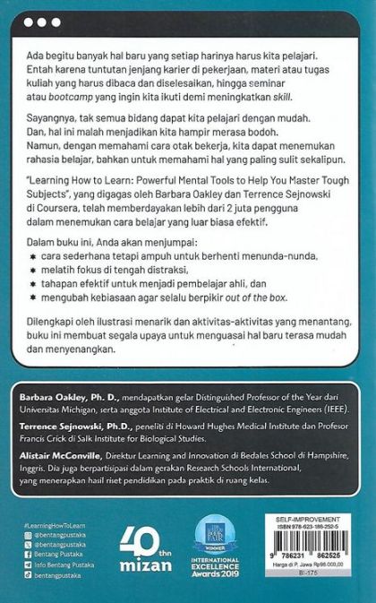 Sayangnya, tak semua bidang dapat kita pelajari dengan mudah. Dan hal ini malah menjadikan kita hampir merasa bodoh. Namun, dengan memahami cara otak bekerja, kita dapat menemukan rahasia belajar, bahkan untuk memahami hal yang paling sulit sekalipun.