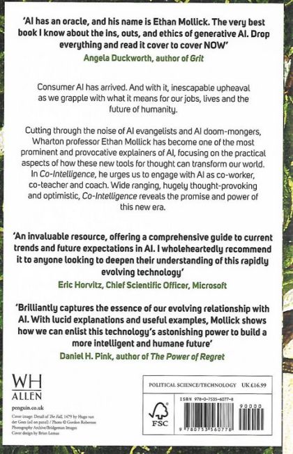 "From Wharton professor and author of the popular One Useful Thing Substack newsletter Ethan Mollick comes the definitive playbook for working, learning, and living in the new age of AI The release of generative AI-from LLMs like ChatGPT to image generators like DALL-E-marks a new era. We have invented technologies that boost our physical capabilities and others that automate complex tasks, but never, until now, have we created a technology that can boost our intelligence-with an impact on work and life that researchers project will be greater than that of steam power or the internet. Mollick urges us not to turn away from AI, and instead to invite AI tools to the table. He demonstrates how AI can amplify our own capacities, acting in roles from brainstorming partner to cowriter to tutor to coach, and assesses its surprising, positive impact on business and organizations. Marshalling original research from workers and teams who are leading the rest of us in embracing and leveraging AI, Mollick cuts through the hype to make a frank and eye-opening case for the real value of AI tools. Moreover, Mollick argues that the long-term impact of AI will be different from what we expect, advantaging English majors and art history experts more than coders, and impacting knowledge workers more than blue-collar workers. Co-Intelligence shows what it means for individuals and for society to think together with smart machines, and why it's imperative that we all master that skill. Co-Intelligence challenges us to utilize AI's power without losing our identity, learn from it without being misled, and harness its gifts to create a better human future. Thought-provoking, optimistic, and lucid, Co-Intelligence reveals the promise and power of generative AI"--.