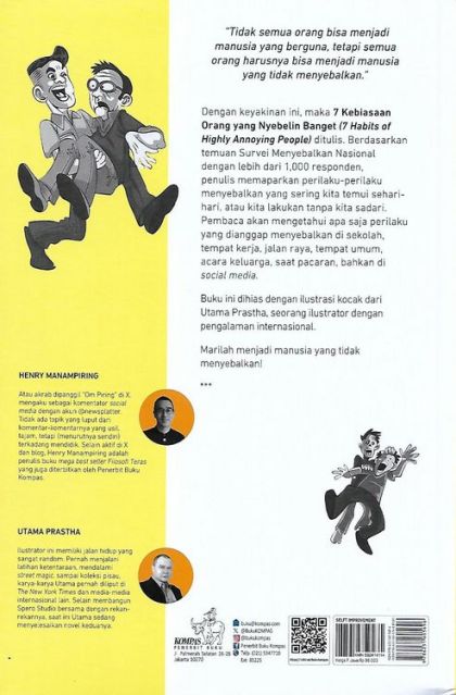 Buku ini dihias dengan ilustrasi kocak dari Utama Prastha, seorang ilustrator dengan pengalaman internasional. Marilah menjadi manusia yang tidak menyebalkan!