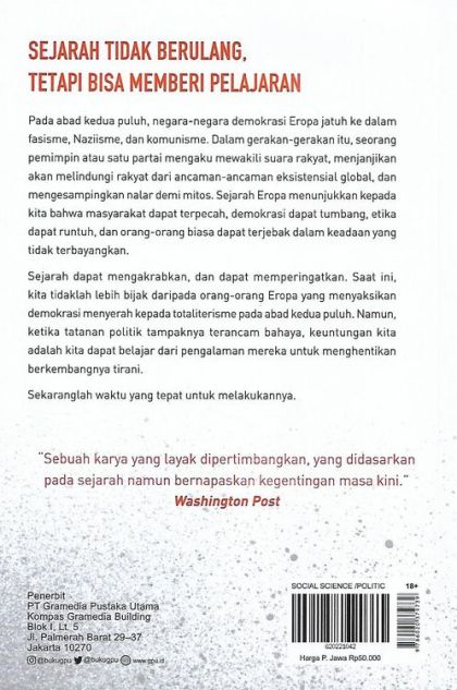 Pada abad ke-20, negara-negara demokrasi Eropa jatuh ke dalam fasisme, Naziisme, dan komunisme. Dalam gerakan-gerakan itu, seorang pemimpin atau satu partai mengaku mewakili suara rakyat, menjanjikan akan melindungi rakyat dari ancaman-ancaman eksistensial global, dan mengesampingkan nalar demi mitos. Sejarah Eropa menunjukkan kepada kita bahwa masyarakat dapat terpecah, demokrasi dapat tumbang, etika dapat runtuh, dan orang-orang biasa dapat terjebak dalam keadaan yang tidak terbayangkan. Sejarah dapat mengakrabkan, dan dapat memperingatkan. Saat ini, kita tidaklah lebih bijak daripada orang-orang Eropa yang menyaksikan demokrasi menyerah kepada totaliterisme pada abad kedua puluh. Namun, ketika tatanan politik tampaknya terancam bahaya, keuntungan kita adalah kita dapat belajar dari pengalaman mereka untuk menghentikan berkembangnya tirani. Sekaranglah waktu yang tepat untuk melakukannya.
