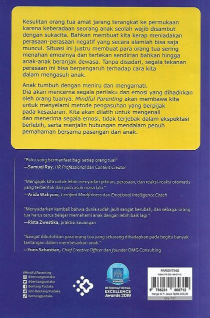 Sebetulnya di luar sana ada banyak pasangan yang secara mental belum siap mengasuh anak, tetapi akhirnya “ikut-ikutan”cepet-cepet punya anak karena tuntutan sosial dan keluarga. Akibatnya, anak dibesarkan oleh orang tua yang belum dewasa, penuh drama, perang ego, anak ditelantarkan, bahkan tidak diperhatikan.Melalui buku ini, kita akan menemukan apa yang sebetulnya sudah ada di dalam diri kita masing-masing, yakni kesadaran, khususnya bagi Anda yang saat ini diberi tanggung jawab hadirnya si kecil yang dititipkan Alam Semesta untuk Anda rawat dan jaga.