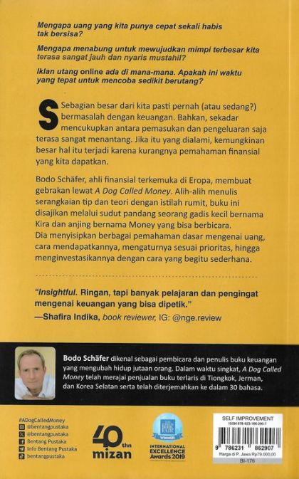 Bodo Schafer, ahli finansial terkemuka di Eropa, membuat gebrakan lewat A Dog Called Money. Dia menyisipkan berbagai pemahaman dasar mengenai uang, cara mendapatkannya, mengaturnya sesuai prioritas, hingga menginvestasikannya dengan cara yang begitu sederhana. Alih-alih menulis serangkaian tips dan teori dengan istilah rumit, buku ini disajikan melalui sudut pandang seorang gadis kecil bernama Kira dan anjing bernama Money yang bisa berbicara.