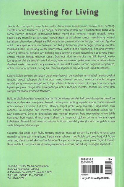 Karena itulah, buku “Investing for Living” ini bertujuan untuk memberikan pencerahan tentang hal tersebut, yaitu tentang proses tahapan demi tahapan yang dilewati oleh seorang investor pemula dengan model awal yang kecil, tapi setelah beberapa tahun akhirnya bisa menjadi investor saham full time. Buku ini ditulis berdasarkan dari pengalaman riil penulisnya sendiri, dan bukan hanya berdasarkan teori saja. Buku ini diharapkan bisa menjadi motivasi bagi masyarakat untuk lebih bersemangat dalam berinvestasi di industri saham, dan menjadi rujukan bahwa untuk mencapai kebebasan finansial dari investasi saham tidak mustahil jika kita mengetahui cara serta tahapan-tahapannya.