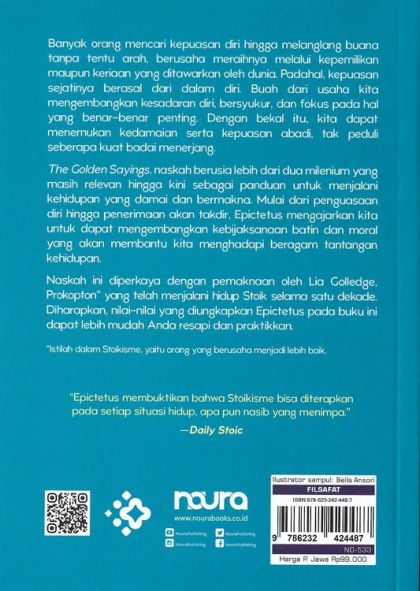The Golden Sayings, naskah berusia lebih dari dua milenium yang masih relevan hingga kini sebagai panduan untuk menjalani kehidupan yang damai dan bermakna. Mulai dari penguasaan diri hingga penerimaan akan takdir, Epictetus mengajarkan kita untuk dapat mengembangkan kebijaksanaan batin dan moral yang akan membantu kita menghadapi beragam tantangan kehidupan.