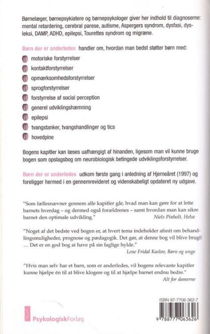 "Børn der er anderledes" udkom første gang i anledning av Hjerneåret (1997) og foreligger hermed i en gennemrevideret og videnskabeligt opdateret ny udgave.