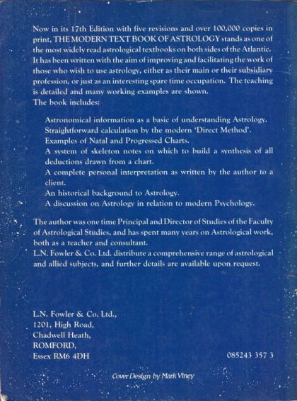Now in its 17th edition with five revisions and over 100,000 copies in print, "The Modern Textbook of Astrology" stands as one of the most widely read astrological textbooks on both sides of the Atlantic. It has been written with the aim of improving and facilitating the work of those who wish to use astrology, either as their main or their subsidiary profession, or just as an interesting spare time occupation. The teaching is detailed and many working examples are shown.