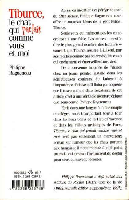 Écrit dans une langue à la fois souple et allègre, nous transportant tour à tour dans les lieux bénis de la Haute-Provence et dans les milieux artistiques de Paris, "Tiburce, le chat qui parlait comme vous et moi" n'est pas seulement un merveilleux roman sur l'amour que les chats portent aux humains : il nous montre à quel point un chat peut devenir l'instrument du destin pour ceux qui savent l'écouter.