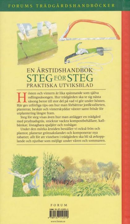 Hösten och vintern är lika spännande som själva odlingssäsongen. Hur trädgården ska te sig nästa säsong beror till stor del på vad vi gör under hösten. Här ges utförliga tips om hur man förbättrar jordkvaliteten, planterar, beskär och vinterskyddar växter samt frösår för utplantering längre fram.