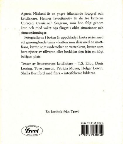 Agneta Näslund är en yngre frilansande fotograf och kattälskare. Hennes favoritmotiv är de tre katterna Curaçao, Cassis och Seagram, som hon följt genom åren och med vaket öga fångat i olika situationer och sinnesstämningar.