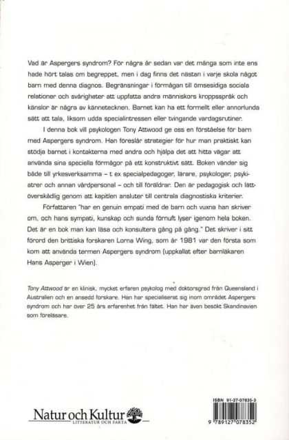I denna bok vill psykologen Tony Attwood ge oss en förståelse för barn med Aspergers syndrom. Han föreslår strategier för hur man praktiskt kan stödja barnet i kontakterna med andra och hjälpa det att hitta vägar att använda sina speciella förmågor på ett konstruktivt sätt. Boken vänder sig både till yrkesverksamma - t ex specialpedagoger, lärare, psykologer, psykiatrer och annan vårdpersonal - och till föräldrar. Den är pedagogisk och lättöverskådlig genom att kapitlen ansluter till centrala diagnostiska kriterier.