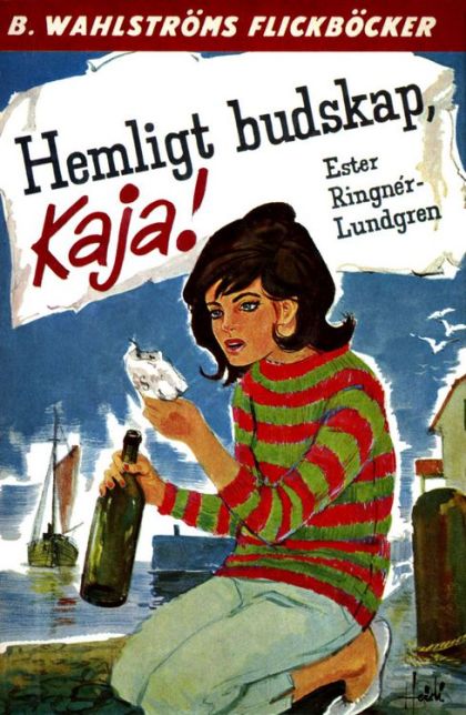 Vågorna slog med jämna mellanrum in bland stenarna vid strandkanten. Ibland med ett svagt kluckande, ibland med ett så kraftigt »plask» att det stänkte upp på mina fötter. Det låg någonting inkilat därnere mellan två stenar. Med ett litet missnöjt utrop gick jag ner och tog upp glasflaskan... Det var ingen vanlig flaska! Jo, jo, naturligtvis var det en vanlig flaska, jag menar inte så - men den var inte tom! Den var igenkorkad och det låg en papperslapp inuti den. Var det - kunde det verkligen vara flaskpost??? Var det verkligen möjligt, att jag, Kaja Nord, som nyss stått och känt en dunkel längtan efter äventyr, hade hittat en flaskpost?