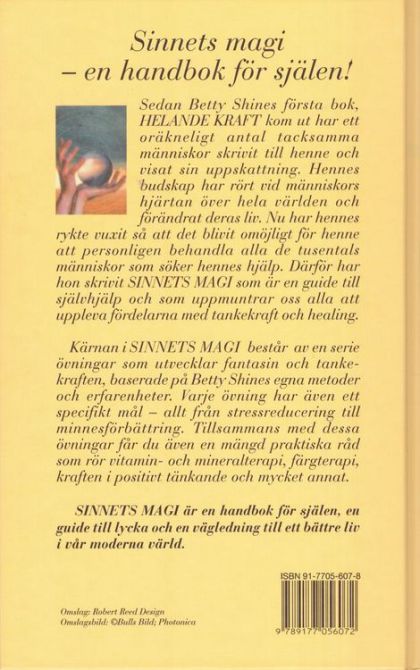 Sedan Betty Shines första bok, HELANDE KRAFT kom ut har ett oräkneligt antal tacksamma människor skrivit till henne och visat sin uppskattning. Hennes budskap har rört vid människors hjärtan över hela världen och förändrat deras liv. Nu har hennes rykte vuxit så att det blivit omöjligt för henne att personligen behandla alla de tusentals människor som söker hennes hjälp. Därför har hon skrivit SINNETS MAGI som är en guide till självhjälp och som uppmuntrar oss alla att uppleva fördelarna med tankekraft och healing.