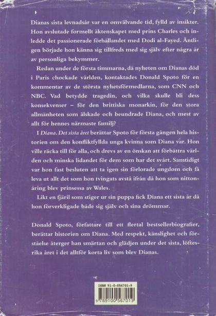 Donald Spoto, författare till ett flertal bestsellerbiografier, berättar historien om Diana. Med respekt, känslighet och förståelse återger han smärtan och glädjen under det sista, löftesrika året i det alltför korta liv som blev Dianas.