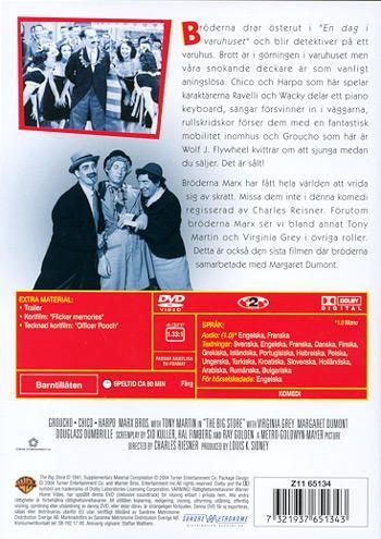 Bröderna drar österut i "En dag i varuhuset" och blir detektiver på ett varuhus. Brott är i görningen i varuhuset men våra snokande deckare är som vanligt aningslösa. Chico och Harpo som här spelar karaktärerna Raveli och Wacky delar ett piano keyboard, sängar försvinner i väggarna, rullskridskor förser dem med en fantastisk mobilitet inomhus och Groucho som här är Wolf J. Flywheel kvittrar om att sjunga medan du säljer. Det är sålt!
