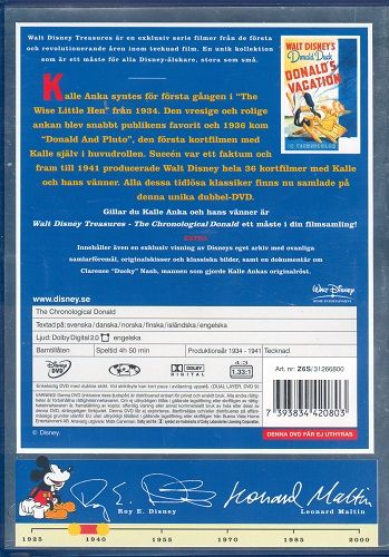 It was 1934 when the irascible Donald Duck came to life in a teeny bit of a part in "The Wise Little Hen" and proceeded to steal the show. From that point on nobody could hold him back, and the much loved cranky character went on to be the most prolific of Walt's "fabulous five." Now for the first time, you can enjoy the Donald in all of his solo starring shorts