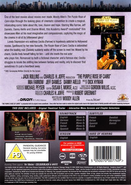 Cecilia is a waitress in New Jersey, living a dreary life during the Great Depression. Her only escape from her mudane reality is the movie theatre. After losing her job, Cecilia goes to see 'The Purple Rose of Cairo' in hopes of raising her spirits, where she watches dashing archaeologist Tom Baxter time and again.