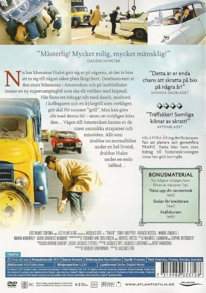 Mr. Hulot drives a recreational vehicle from Paris to Amsterdam in his usual comic, disasterous style.