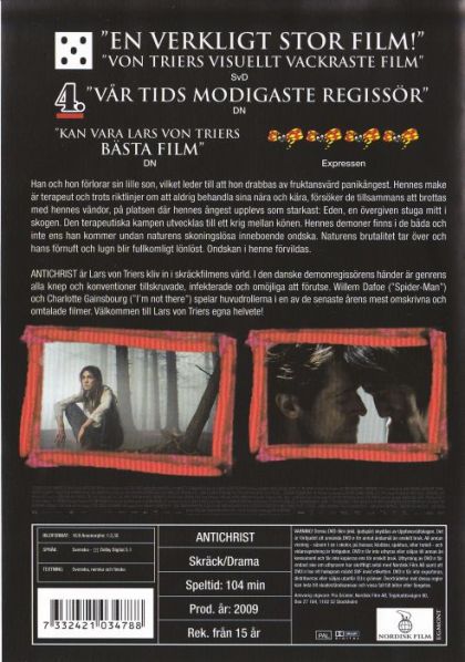Han och hon förlorar sin lille son, som leder till att hon drabbas av fruktansvärd panikångest. Hennes make är terapeut och trots riktlinjer om att aldrig behandla sina nära och kära, försöker de tillsammans att brottas med hennes våndor, på platsen där hennes ångest upplevs som starkast: Eden, en övergiven stuga mitt i skogen. Den terapeutiska kampen utvecklas till ett krig mellan könen. Hennes demoner finns i de båda och inte ens han kommer undan naturens skoningslösa inneboende ondska. Naturens brutalitet tar över och hans förnuft och lugn blir fullkomligt lönlöst. Ondskan i henne förvildas.